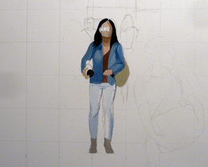 A Question of Size February 7, 2013 For a while now, I've been working on or planning paintings that are smaller, more accessible for patrons in terms of sales. This is partly in response to the poor economy, but also because smaller paintings are easier to finish. Now though, after some intense painting sessions and trying to get the details right on tiny faces in the Skaters and other series, I'm rethinking this decision. The large pieces do take forever, but at leats there's enough room for me to say what I want to say without feeling disappointed with my draftsmanship. The brushes are a factor, too; it's hard to find one whose bristles aren't too long, or don't have too much spring, or refuse to come to that all-defining point after a couple of sessions. So I have to give it a little more thought and see if I can come up with a compromise. Eventually I will get the face to look like the model in Fashion Forward. (see right) |