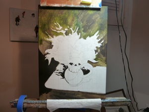 Digging In October 13, 2012 Well, except for a fabulous time visiting Alexandria with P.T. and J. E. on Thursday, I spent the entire last week painting. Actually, I did some painting on Thursday, too, after I got home from our lunch at Vermilion. So now almost everything on the Works in Progress page has had some recent attention. A couple of things are really close to completion, and three-quarters of the paintings are within striking distance. I hope to get nearly everything done by the end of the year; that's probably unrealistic, but it's the current plan. I'm also gessoing some panels and odd-size canvases, and toying with the images for the new series. Will start the pencil drawings on them very soon. Some of today's work at right. |