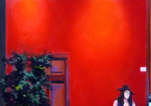 Insane Blending February 14, 2013 It takes forever to do decent blending. I've sat down at the easel 20 times and worked on He Knew Better Than to Keep Her Waiting, and today--- I think--- I've got the back wall done. It's a bright red wall with two spotlights on it. The most highly lit areas are almost yellow in color, and then the darker ones are a deep red. In some places behind the potted tree, the red actually goes nearly violet, so there's quite a shift as far as color is concerned, and the spotlit areas fall off rather quickly into shade, so I needed to get the shape of the light right as well as the smooth transitions from one shade to another. It seems appropriate to be working in red on Valentine's Day! When the paint dries down, I'll know whether the wall's done or not. |