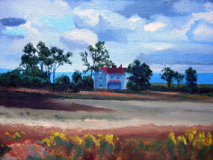 Family Matters November 2, 2008 There have been several scenarios lately involving family members, and painting time has been accordingly reduced. I've done just a bit of work here and there whenever I can catch a bit of time. This will probably continue over the next week, but painting can wait a bit. I did manage to finish the first set of five Postcards. They're going in to the gallery tomorrow, but you can check them out on the Landscapes page. |