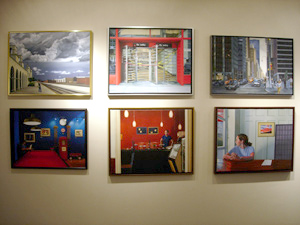 Magical Reality January 13, 2009 Maybe this is how I should characterize my work when someone asks what style I work in... Magical Reality. Reality that has a sense of mystery to it, whether it's because of the image content or the way it's painted. I'm moving more towards a softer edge on things lately, and some hazier areas for atmosphere. That reminds me; there is a style called Magical Realism; I should look that up in Wikipedia. Anyway, I've been working my tail off all day on The Big Three: Conversation, Time Piece, and He Searched. I've attacked some areas that were frustrating me, like the back wall in Time Piece, and made a lot of adjustments and changes everywhere. The table in Conversation had to be redrawn. The seated group of women in He Searched needed attention. And I lightened the color of the reflected wall in Conversation to match what I saw in the extra reference photos. It brightens up the whole painting, but the color still isn't right. But I'm finally getting a sense of the shiny reflective off-white tile in Time Piece. The wall's far back in the space, and in shadow, but it should still read as a darkened white. |