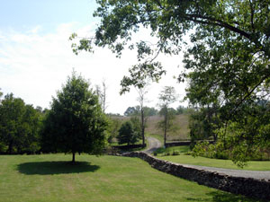 Recharging the Batteries September 23, 2008 Didn't realize how much I needed a break from painting. I was getting positively antagonistic towards Conversation, and it has the potential to be a really good piece. It just needs a loving hand, careful strokes, attention to detail, but that's all over a 40 by 50 inch span... Anyway, I couldn't even think about painting until this afternoon, and then I worked on Jay on Read and three of the Postcards in quick succession. It feels good to get back to landscapes. But---back to the title of this entry---over the weekend I went out to the country. This time of year the Virginia countryside is just spectacular...everything's gold and green and smoky blue. The air is fresh and clear, and the light softens the landscape. You remember to breathe. The destination was Piedmont Vineyard, and it was a delightful experience. The wine was tasty, the company couldn't be beat, and the surroundings were gorgeous. The image at right is the view from the patio, just outside the tasting room. I took a bunch of photos---there is a lily pond, too. Creative batteries are now in good working order. |