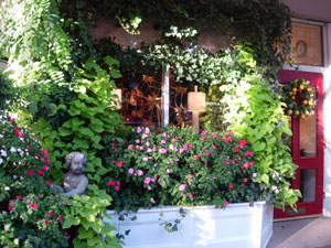 Second Thursday January 8, 2009 Yesterday had several rough spots, so today I am indulging my inner color junkie by working mainly on the large pot and palm fronds in He Searched. I had thought it would be both easy and pleasurable to paint in the shadows of the palms on the pot; turns out I was wrong. Even a zen-like, quick brushstroke can go amiss. After careful consideration, I realized that the shadows not only define the curvature of the pot, but also document the shapes of the fronds that are largely unseen in the shadowy area above. So after two cups of coffee, I had to think in advance and then try to focus on a brush stroke that should be loose and free. The central vertical frond coming out of the top of the pot is a violent green, but it matches exactly the color in the reference photo and perks things up. I'll tone it down a bit with a shadow on one side but I like its spunky individualism. It's already the second Thursday of the month/year. If you are art aficionado, come on down to Gallery West. We'll be open until 9 tonight. |