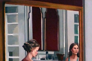Wintry MixFebruary 2, 2011 Have to confess to some serious slacking off in the last few days. This has included eating junk food and watching junk TV. The weather's partly a factor, but also I just needed a break. I'm very confused about my own work. Sometimes I catch a glimpse of a painting in the hall, let's say, Wedding Preparations, for example; and the stillness and breathable air and singularity of moment captured on canvas excite me, and I want to do more work like that. But then I look at the paintings of other artists in magazines or on the web, and the looseness and freedom of stroke make me want to work in that style. I worry that my stuff's too constrained and formal, but the clarity of the vision really is me. I think I'm hard-wired to do this kind of painting. Still, I'm going to try another brushy piece--- this one of a young woman entering Grand Central Terminal in New York. I made an attempt at impressionism with Two By Two, but didn't feel I pulled it off. This afternoon, I spent about an hour and a half reworking the face on the left side of Inside/Out. It's finally beginning to come together. Have to let it dry, and then go back in on the eyes, maybe the left side of the mouth. Then on to the neck and hand. Whew. |