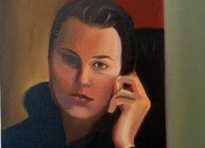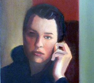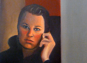 Trying AgainMarch 18, 2011 Somewhere further down in this blog you can see the past attempts at capturing the enigmatic face of the young lady on the left side of Inside/Out. Here's my latest try, at right--- some things are working better than in previous iterations, but I've still got some work to do on the eyes. Oh, also, there's a lot of glare on the image because the paint is wet. Trust me, it looks better than it does here. |