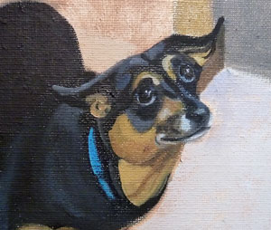 Some Success; Some...NotJanuary 30, 2011 Spent the better part of an hour working on the girl's head in Inside/Out; still can't get anything right. I did finish two paintings: Treats, Please, and Air Series #1. |