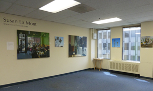 Some ProgressApril 27, 2012 Fashion Forward, the painting I want to finish for Artomatic, is coming along quickly. I'm going to put in several hours on it today. The background is looking pretty good, and that, of course, is the foundation I need to work up from. Put in 5 long hours yesterday in my first shift at Artomatic. This is going to be one interesting show--- but then, haven't they all been? I think the sheer size of the thing is going to overwhelm people, but what a feast this is going to be for the senses. Had the opportunity to visit three floors: 3. 4, and 11. Eleven is a byzantine but intriguing maze of small and large rooms, 3 and 4 more user-friendly. It was a surprise to see how little space was still available (on those floors, at least); apparently the entire arts community of the DMV area is going to be represented. I can't wait! At right: the far wall is where I'll be showing on floor 3. |